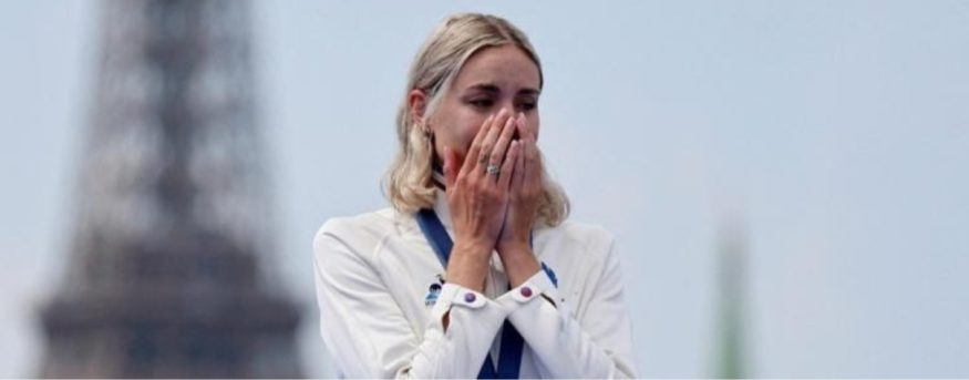 Elle franchit la ligne d’arrivée, le sourire aux lèvres. A terre, elle se prosterne, émue, sur ce bitume parisien, pas encore totalement consciente que sa vie vient de prendre un nouveau tournant . Elle confie « Je ne réalise toujours pas que je suis championne olympique. J’ai vomi avant le départ. Georgia Taylor Brown m’a rassurée et m’a dit : c’est une course comme les autres, tu peux le faire »